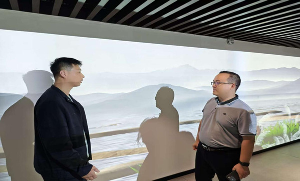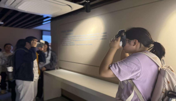 步入数字展厅,一个将中华优秀传统文化、盐城独特自然风光与前沿数字技术深度融合的沉浸式学习场景呈现在眼前。通过VR技术,时空界限被彻底打破。同学们戴上设备,既能瞬间“飞越”至盐城广袤的湿地上空,俯瞰丹顶鹤翩跹的壮阔景致;又能“置身”于虚拟剧场,身临其境地欣赏文化馆的精彩演出。这种前所未有的交互体验,让大家真切感受到了技术为文化感知带来的颠覆性革新。