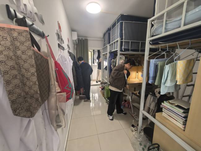 活动启动后,全院同学积极响应、迅速行动,以饱满热情投入卫生整治工作。大家分工协作、默契配合,聚焦桌面整理、地面清扫、衣物规范收纳、门窗擦拭、卫生间清洁等关键区域,全面清理卫生死角与杂物灰尘,打造干净、整洁、舒适的居住空间。活动过程中,同学们相互督促、互帮互助,在劳动中凝聚集体力量、增强宿舍归属感,以实际行动践行劳动精神,为学风建设筑牢生活基础。